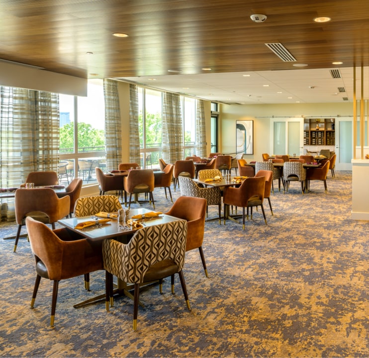 Indulge in culinary excellence every day with multiple sophisticated dining venues. Independent living residents enjoy fine dining at the renowned Ellsworth Supper Club, while the Fairfax Bistro offers casual breakfast and lunch options in a stylish setting.
